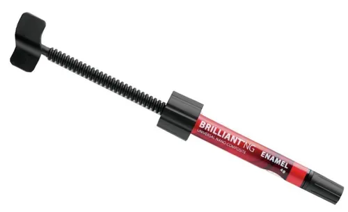 BRILLIANT NG is a universal composite aimed at simplifyingthe technique of application, achieving excellent aestheticresults. Its pre-polymerised particle filling, in addition tohigh nanometric particle content, produce optimum consistency for manipulation and modelling along with anoticeable decrease in shrinkage and easily achievablehigh gloss surfaces. Its Duo Shade system allows it to..